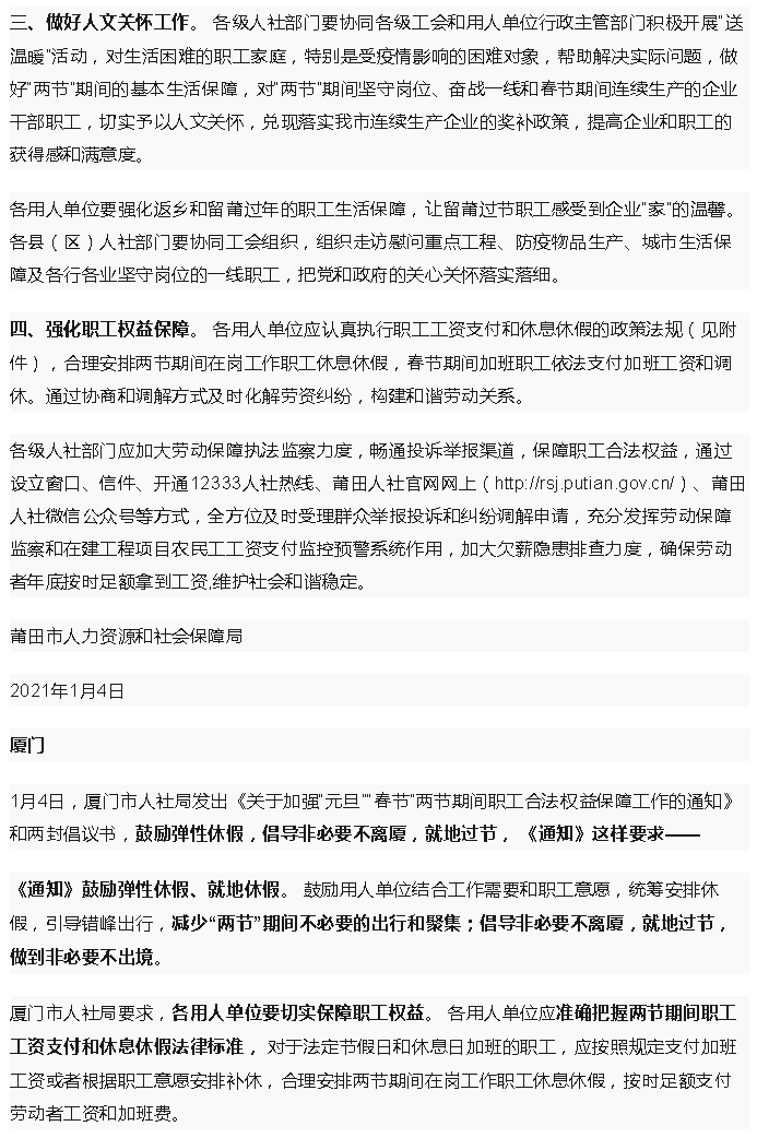 發布時間:2021/1/7 10:00:39 瀏覽次數:2181 來源:福建日報微信綜合、莆田市人社局網站、廈門人社局網站